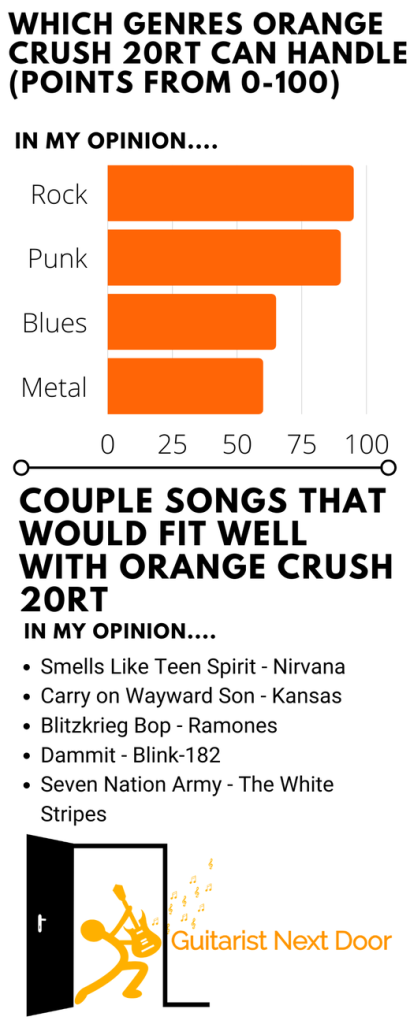 Here’s a little graph that reveals some genres and songs that are a good fit with this amp in my opinion: